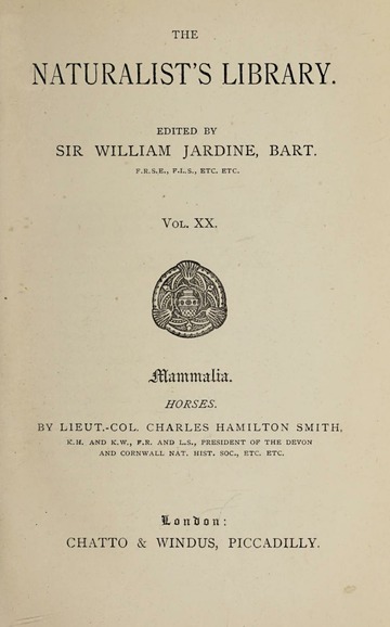 « A history of the Solipede animals, of the species contained in the Linnaean genus Equus, and more recently designated by the appellation of Equidae, would be liable to disappoint a scientific reader if with Zoological view’s alone, he expected to find in its pages much that was new or unobserved by anterior writers ; for, when we consider, that in the genus, two species, the Horse and the Ass, hav.e been the object of the most unremitting attention to man from the beginning of human civilization, that poets, philosophers, statesmen, historians, rural-economists, warriors, hunters, speculators, physiologists and veterinarians have all objects where the horse at least forms a conspicuous element, that from the inspired poetry of the book of Job, from the times of Homer, Aristotle, Xenophon , Herodotus, Virgil, Varro, Columella , Gesner, Aldrovandus , Johnston, Buffon , Linnaeus, Pennant, Pallas, Gmelin to Cuvier, Bell, and a host of others, ancient and modern, facts and observations have been accumulating, researches pursued and descriptions produced, where we trace patient investigation and often eloquent description. It must he confessed that the inquiry is all but exhausted, and that we must confine our views to a collection of the more prominent facts, for the attention of those who have neither time nor inclination to search the whole field, and while due place is given them, draw forth from their general or particular tenor some observations and comparisons that perhaps have not as yet been offered to the public or have only met with transient attention. Thus we may still hope to submit in the result of our labours something worthy of notice to the learned, and not uninviting to the casual reader, whose object is merely to obtain correct information combined with amusement. » Présentation de l’éditeur (1840)